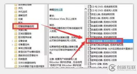展開左側(cè)的分支列表,選中“可移動存儲設備”選項,然后在右側(cè)找到“可移動設備,拒絕寫入操作”選項,并雙擊進入編輯狀態(tài)。