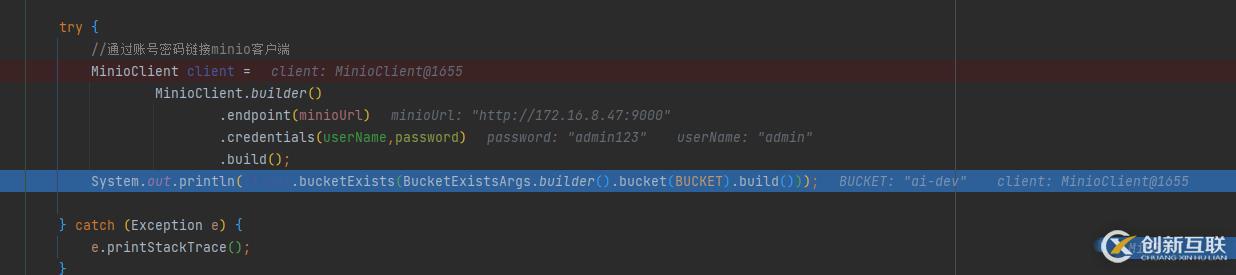 //通過(guò)賬號(hào)密碼鏈接minio客戶(hù)端