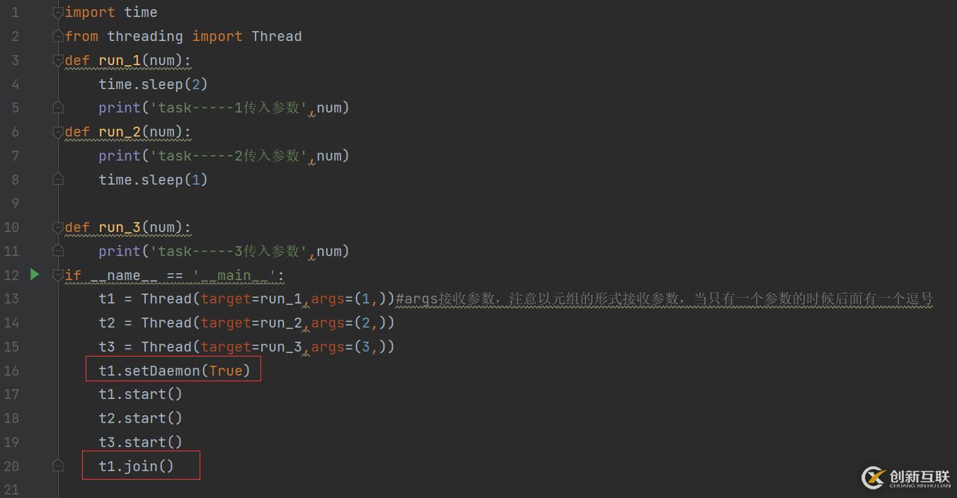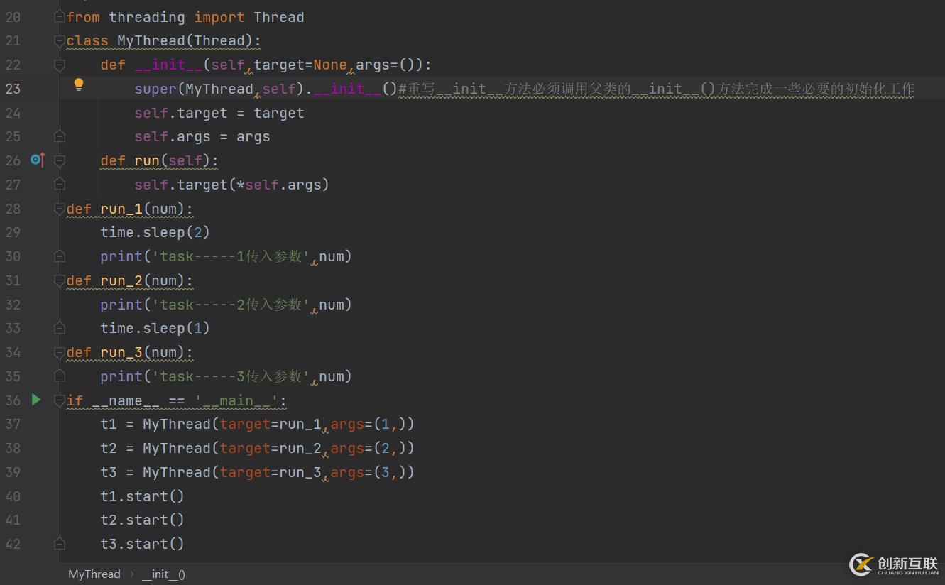 t.start()方法在執(zhí)行的時(shí)候會(huì)自動(dòng)調(diào)用run()方法,所以在自定義線程的時(shí)候只需要重寫(xiě)__init__方法和run()方法即可,__init__方法負(fù)責(zé)接收參數(shù),這些參數(shù)最后會(huì)傳入run()方法中,根據(jù)需要實(shí)現(xiàn)自定義功能。
