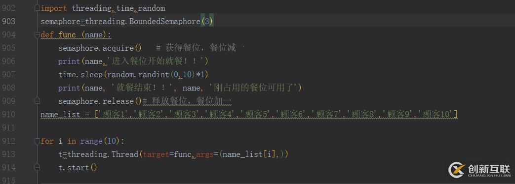 例如餐桌有三個(gè)位置,但是有10個(gè)人同時(shí)就餐,這時(shí)候就需要信號(hào)量參與保證餐桌上只有三個(gè)人,也就是線程的并發(fā)數(shù)始終是3。