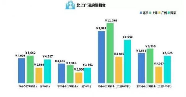 再來說說房租,上海市今年的房價上漲幅度較高,市中心三居室房租在11098元,是廣州的兩倍多,上海市中心一居室租金可在廣州市中心租一套三居室尚且有余。