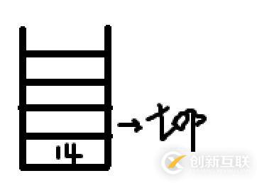 如圖1,這是一個(gè)容量為5的空棧,棧頂在最下邊。在圖2中,我們往棧頂插入了一個(gè)元素14,棧頂上移一個(gè)單位;
