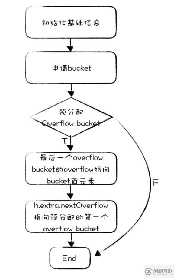 默認(rèn)創(chuàng)建2b個(gè)bucket,如果b大于等于4,那么就預(yù)先額外創(chuàng)建一些overflow bucket。除了最后一個(gè)overflow bucket,其余overflow bucket的overflow指針都是nil,最后一個(gè)overflow bucket的overflow指針指向bucket數(shù)組第一個(gè)元素,作為哨兵,說明到了到結(jié)尾了。
