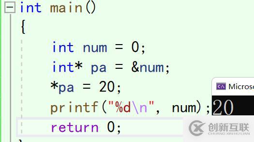 *pa = 20;//修改指針變量pa所指向的變量的值