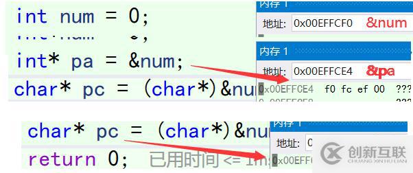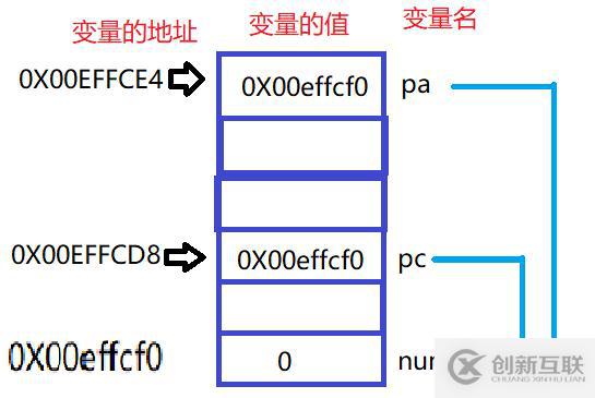 int* pa = #//地址編號(hào)為:0x00EFFCE4,存放的值為0x00effcf0