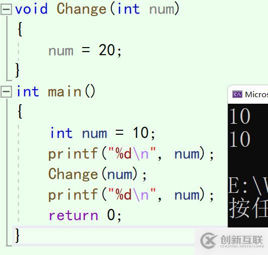 程序在函數(shù)Change中改變了num的值,但是再次輸出實(shí)參的值卻發(fā)生沒有任何變化,說明函數(shù)的形參值的改變并未影響到實(shí)參值的改變。這是因?yàn)樾螀⑹菍?shí)參的一份臨時(shí)拷貝,通過按值調(diào)用不能在被調(diào)函數(shù)中改變其調(diào)用語句中的實(shí)參值。這時(shí)我們就要用到指針這個(gè)秘密武器了。指針變量的一個(gè)重要作用就是用作函數(shù)參數(shù),由于傳給被調(diào)函數(shù)的這個(gè)值不是變量的值,而是變量的地址,通過向被調(diào)函數(shù)傳遞變量的地址可以在被調(diào)函數(shù)中改變主調(diào)函數(shù)中變量的值,模擬C++中的按引用調(diào)用。