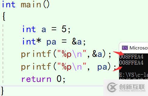 printf("變量a的地址存儲(chǔ)在pa中=%p\n", pa);