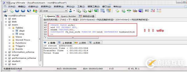 圖1-2中,創(chuàng)建wife表時(shí)該表的外鍵與主鍵相同,都是wid,并且引用自husband表的主鍵,這樣做就保證了wife表中的記錄與husband表中的記錄是一對一的關(guān)系,wife表的主鍵wid就必須滿足以下三個要求: