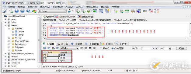 (3)向husband表中插入三條記錄,如圖1-3所示: