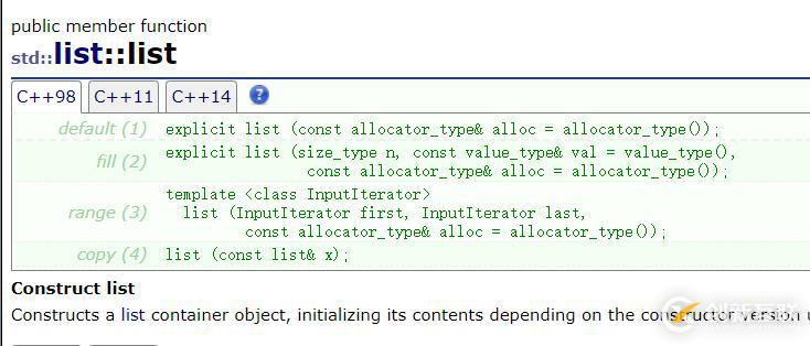 list (InputIterator first, InputIterator last) | 用[first, last)區(qū)間中的元素構(gòu)造list |