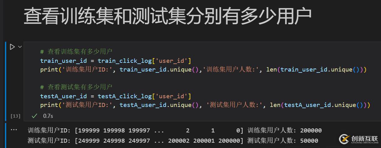 可以看到,訓(xùn)練集共有ID為0~199999的用戶共20w人;測(cè)試集共有ID為200000~249999的用戶共5w人。?