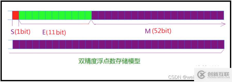 對于64位的浮點(diǎn)數(shù),最高位的1位是符號位S,接下來的11位是指數(shù)E,剩下的52位為有效數(shù)字M