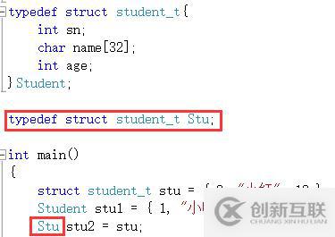 基于struct student_t類(lèi)型定義了一個(gè)新的類(lèi)型Student,此時(shí)的Student是一個(gè)類(lèi)型。
