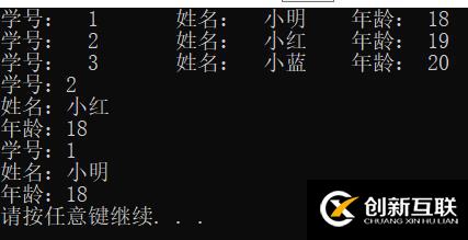 printf("學(xué)號(hào):%3d\t姓名:%6s\t年齡:%3d\n", stu2[i].sn, (*(stu2+i)).name, (stu2+i)->age);