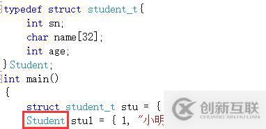 struct studen_t stu = { 1, "小明" };