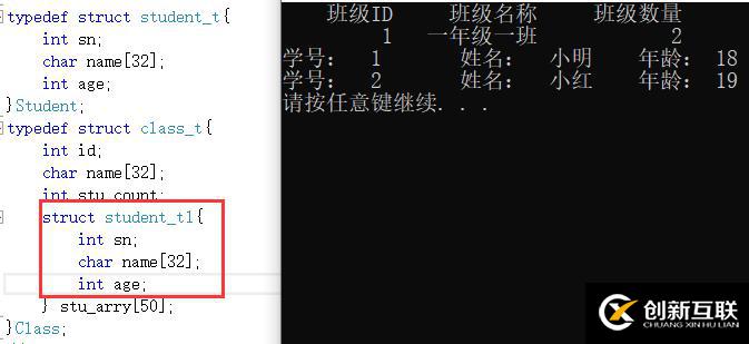 printf("學(xué)號(hào):%3d\t姓名:%6s\t年齡:%3d\n", class.stu_arry[i].sn, class.stu_arry[i].name, class.stu_arry[i].age);