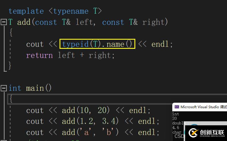可以根據(jù)調(diào)用參數(shù)的類別進(jìn)行自己識別,10-int,20-int編譯器會推演出int類型的add函數(shù)