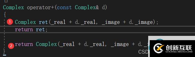 ①例一:一二倆步都可以達(dá)到目標(biāo),一使用的是構(gòu)造一個臨時對象來保存加和之后的值,不僅需要進(jìn)行一次構(gòu)造函數(shù),還會進(jìn)行一步ret結(jié)果的拷貝構(gòu)造,而二使用的是匿名對象的返回,可以直接返回加和之后的結(jié)果,少了一次拷貝構(gòu)造。因此能使用匿名對象返回的盡量使用匿名對象返回,因為這樣會少調(diào)用一次拷貝構(gòu)造,效率得到了提高。