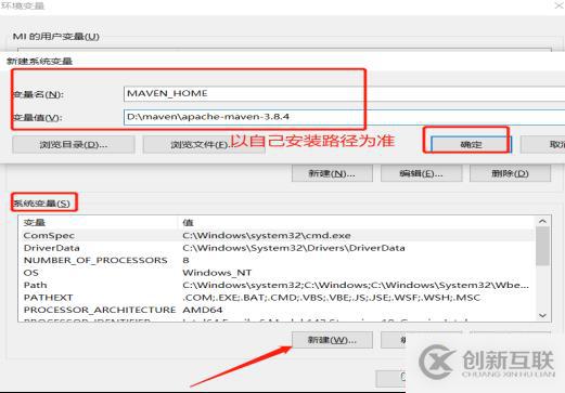 新建系統(tǒng)變量:MAVEN_HOME=D:\maven\apache-maven-3.8.4(以自己安裝的路徑為準)