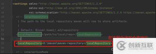 1.找到節(jié)點localRepository,在注釋外添加自己倉庫的地址