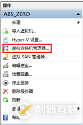在關閉Hyper-V虛擬機的情況下,選擇Hyper-V管理界面中的"虛擬交換機管理器"。