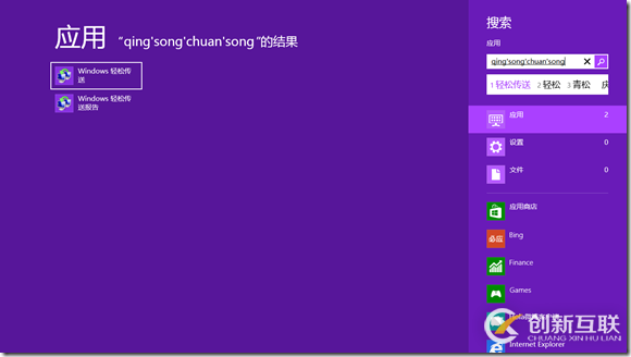 在原始計算機中的開始屏幕中輸入“輕松傳送”,點擊搜索結(jié)果中的Windows輕松傳送:
