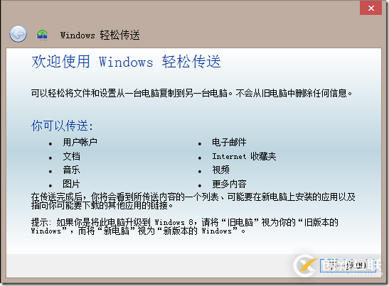 使用輕松傳送,要求新計算機的系統(tǒng)為Windows 7或Windows 8,舊計算機的要求略低,但是若為XP、Vista等系統(tǒng),則需要安裝額外的補丁。