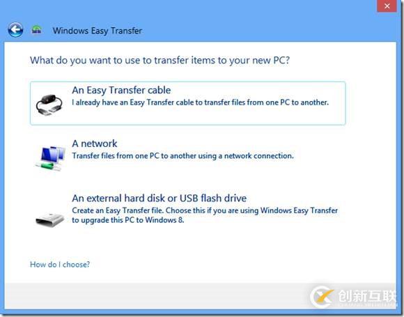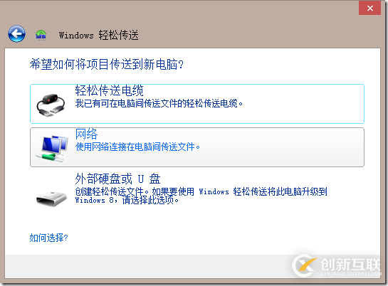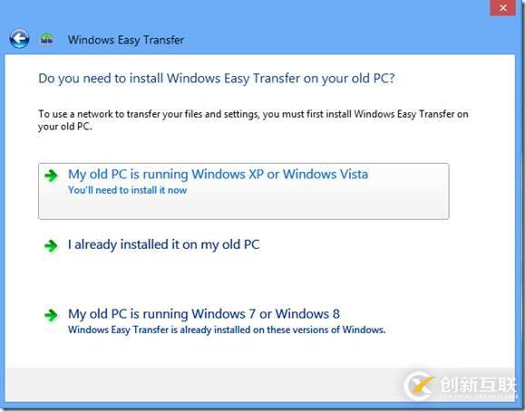 接下來會讓選擇舊電腦使用的操作系統(tǒng),根據(jù)實際情況選擇即可。這里兩臺計算機使用的均為Windows 8操作系統(tǒng),故選擇最后一個選項: