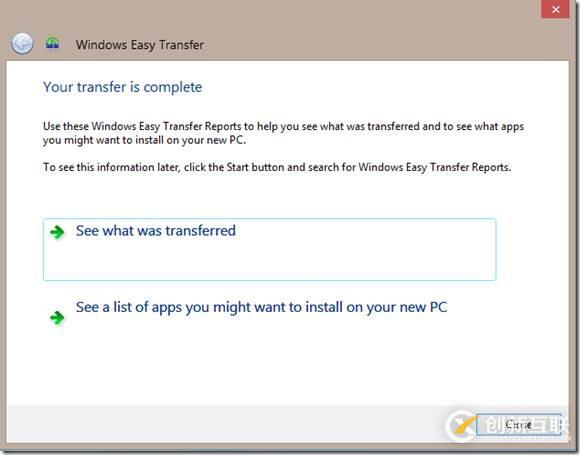 稍等片刻即完成傳送,我們點擊“關(guān)閉/Close”即可。此時,可以發(fā)現(xiàn)新計算機的主題已經(jīng)發(fā)生了變化。同時,可以查看傳送的項目以及安裝程序的列表:
