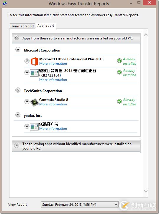 此外,還可以查看就計算機安裝的程序以及在新計算機中的安裝情況,以方便我們選擇需要安裝的程序: