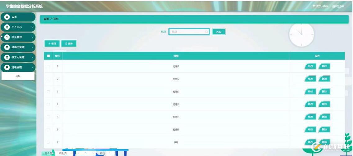 班級管理,在班級管理界面可以對索引,班級進行修改和刪除操作,如圖4-10所示。