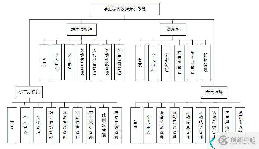 3.2總體設(shè)計根據(jù)學(xué)生綜合數(shù)據(jù)分析系統(tǒng)的功能需求,進行系統(tǒng)設(shè)計,對這些功能進行整合產(chǎn)生的功能結(jié)構(gòu)圖如下圖所示: