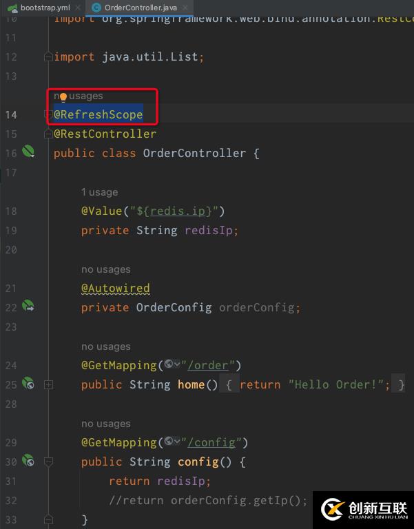 關(guān)于config里的屬性配置可以點(diǎn)進(jìn)源碼里看,為了默認(rèn)值的我都沒有再重復(fù)給了,這里我激活的profile為 prod,在order的程序里獲取所配置的redis的ip。