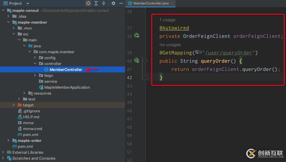 并且在消費(fèi)者 member 的Application里新增 @EnableFeignClients 注解