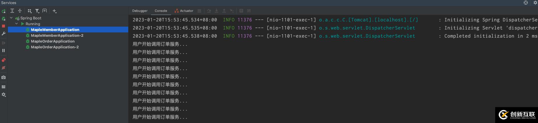 然后我再訪問 http://localhost:1101/user/queryOrder 讓用戶1調(diào)訂單服務(wù),我訪問了10次,發(fā)現(xiàn)每個(gè)order服務(wù)分別訪問了5次,輪詢來訪問的,當(dāng)然這應(yīng)該是openFeign里面的負(fù)載均衡的策略,訪問另外一個(gè)member服務(wù)也是一樣的效果 http://localhost:1102/user/queryOrder