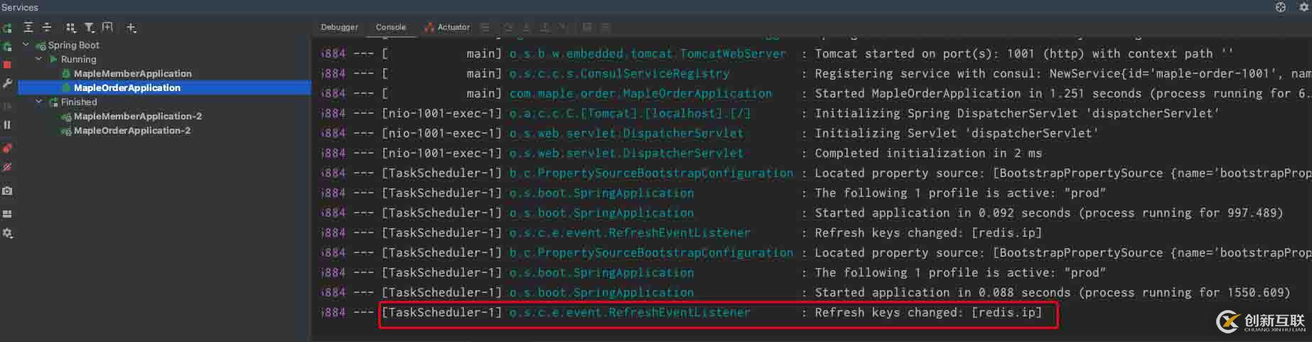 直接就更新了,同時(shí)在idea控制臺(tái)里也能發(fā)現(xiàn)這段日志,是一個(gè)TaskScheduler來幫我們做動(dòng)態(tài)刷新的