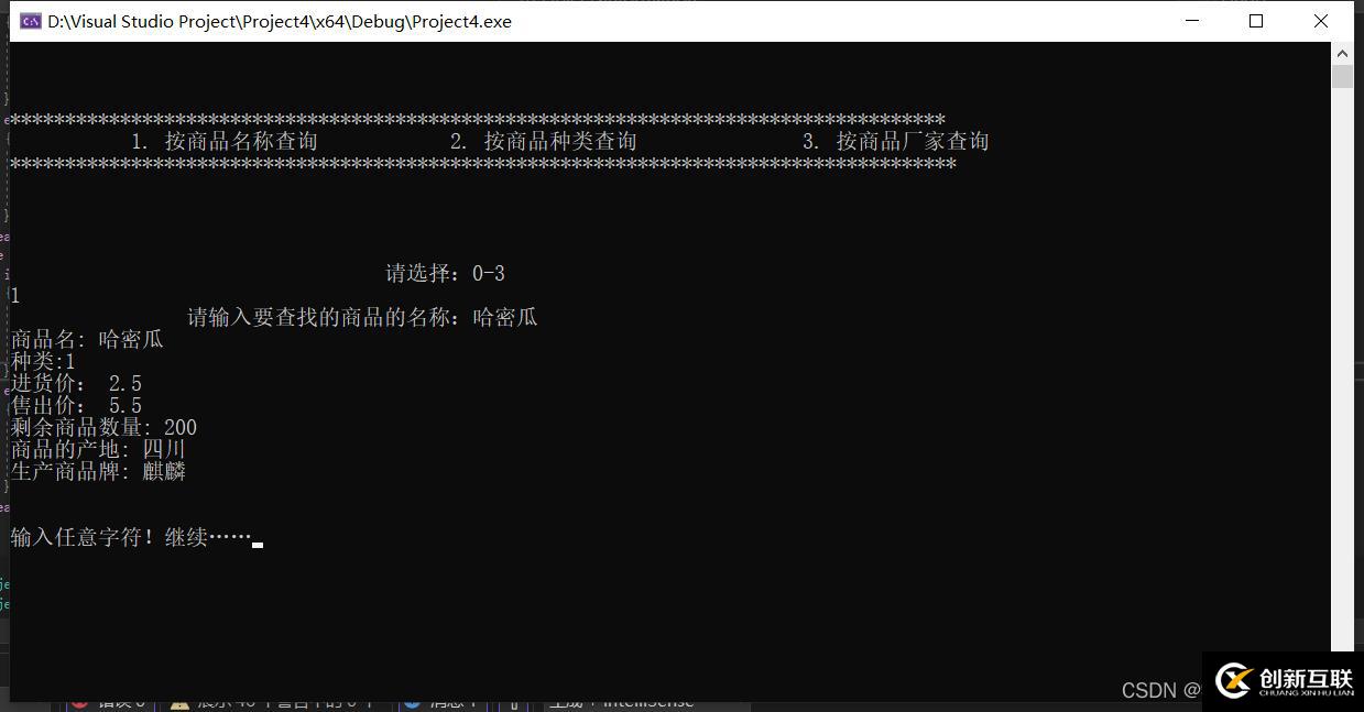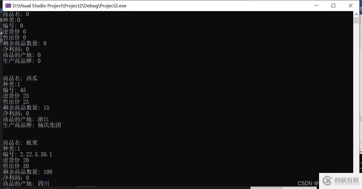 stockamount<< endl<< "商品的產(chǎn)地: "<< place<< endl<< "生產(chǎn)商品牌: "<< brand<< endl<< endl<< endl;