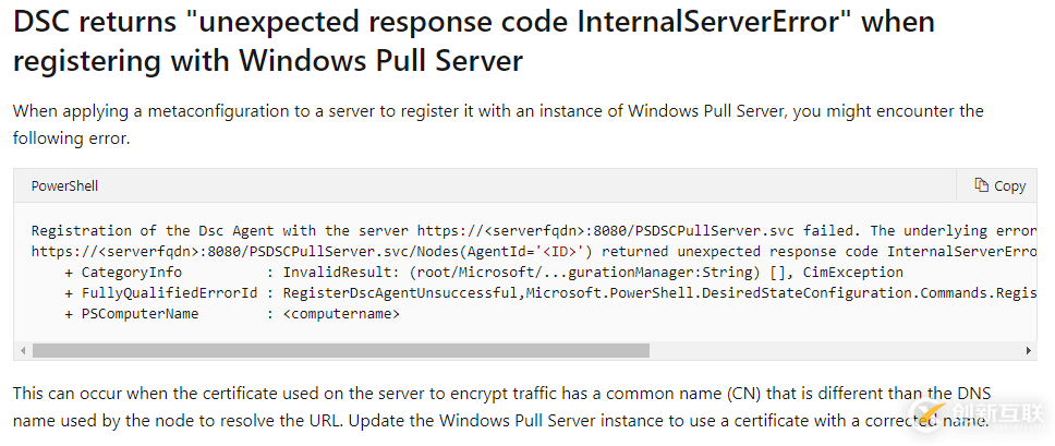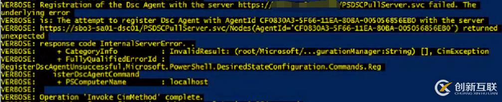 也就是說(shuō),該Agent Server在之前某個(gè)時(shí)候注冊(cè)過(guò)(通過(guò)Get-DSCLocalcongurtionManager命令也可以看出來(lái)),但后來(lái)AgentId變化了,所以新注冊(cè)的時(shí)候,由于已經(jīng)存在該Node Name,導(dǎo)致數(shù)據(jù)庫(kù)插入數(shù)據(jù)失敗。