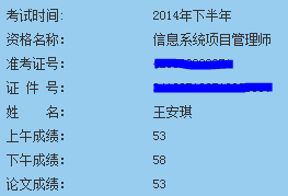 在2014年的末尾12月30日,系統(tǒng)集成項目管理師的考試成績終于出來了,查成績前還是很淡定的,考不過的話就再系統(tǒng)地學(xué)一遍唄,活到老學(xué)到老,就算考過了也得不停地學(xué)習(xí)。第一次考就過了,真是運氣好得不得了啊,真是碰到了近幾年最容易的一次出題了,不過的話真是對不起出題者。查過了,聽姚老師講,這個成績能在南京排前50,真的要感謝他,也感謝所有支持我的人,謝謝大家!轉(zhuǎn)發(fā)請說明,來自: http://www.cnblogs.com/wgp13x/