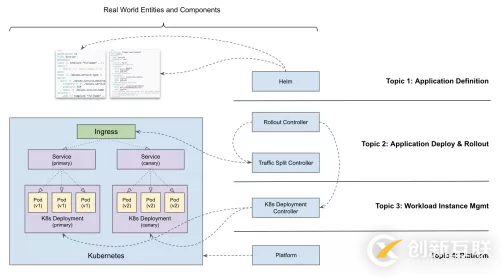 Helm 就是其中最成功的一個例子,它位于整個應用管理體系的最上面,也就是第 1 層,還有 Kustomize 等各種 YAML 管理工具,CNAB 等打包工具,它們都對應在第 1.5 層。然后有 Tekton、Flagger 、Kepton 等應用交付項目,對應在第 2 層。Operator ,以及 K8s 的各種工作負載組件,比如 Deployment、StatefulSet,對應在第 3 層。最后才是 K8s 的核心功能,負責對工作負載的容器進行管理,封裝基礎設施能力,對各種不同的工作負載對接底層基礎設施提供 API 等。