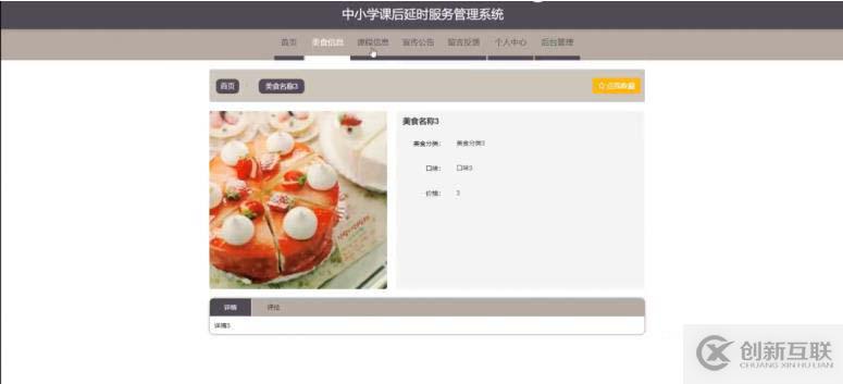美食信息,在美食信息頁面可以查看美食名稱、美食分類、口味、價(jià)格、詳情、圖片等內(nèi)容,并進(jìn)行評(píng)論、收藏操作,如圖5-3所示。