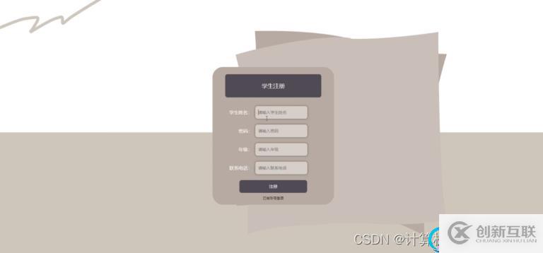 學(xué)生注冊(cè),在學(xué)生注冊(cè)頁面通過填寫學(xué)生姓名、密碼、年級(jí)、聯(lián)系電話