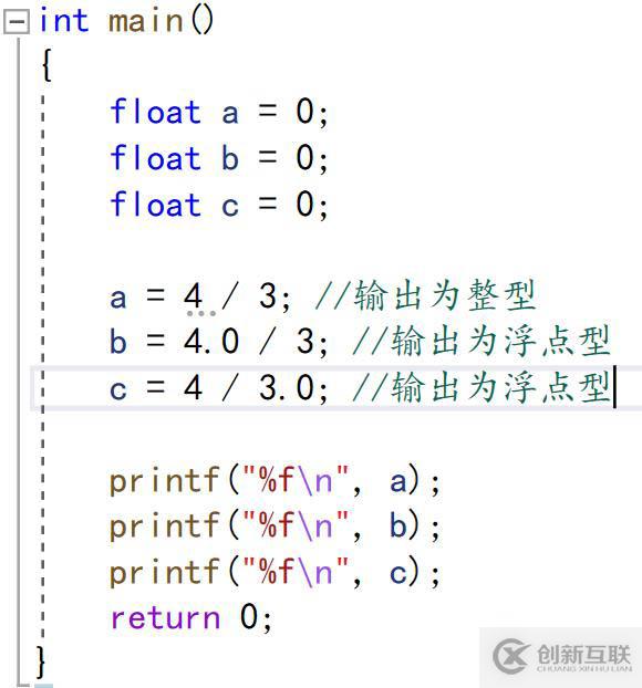 由此可見,當(dāng)我輸出a的時(shí)候,由于精度不夠,輸出只是整型。而當(dāng)我在運(yùn)算過程中加入了“.0”后,并沒有改變?cè)袛?shù)據(jù)的大小,而且此時(shí)輸出就會(huì)轉(zhuǎn)化成浮點(diǎn)型了。