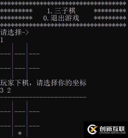 為了給讀者更直觀的感受,接下來(lái)我們?cè)賮?lái)看一看用編程實(shí)現(xiàn)三子棋的成品是怎么樣的。