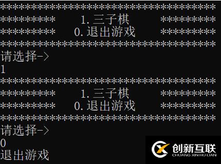 運(yùn)行截圖:(選擇1并沒(méi)有開(kāi)始游戲是因?yàn)檫€沒(méi)有開(kāi)始寫游戲本體代碼)