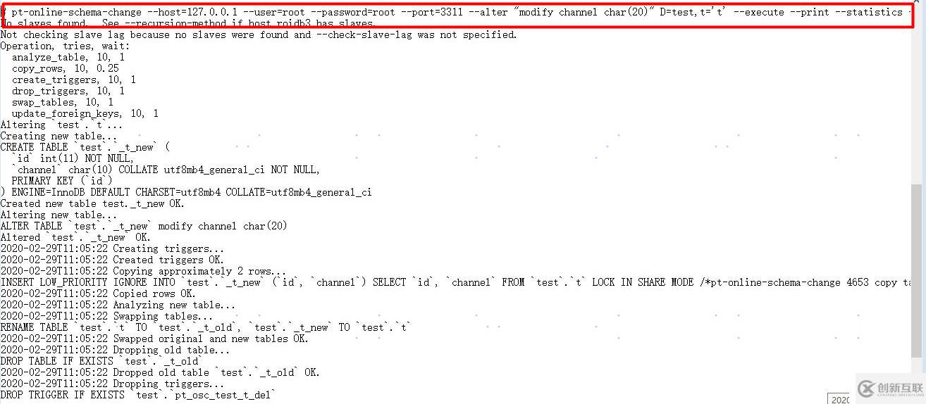 1、使用PT-OSC工具來(lái)修改表字段長(zhǎng)度