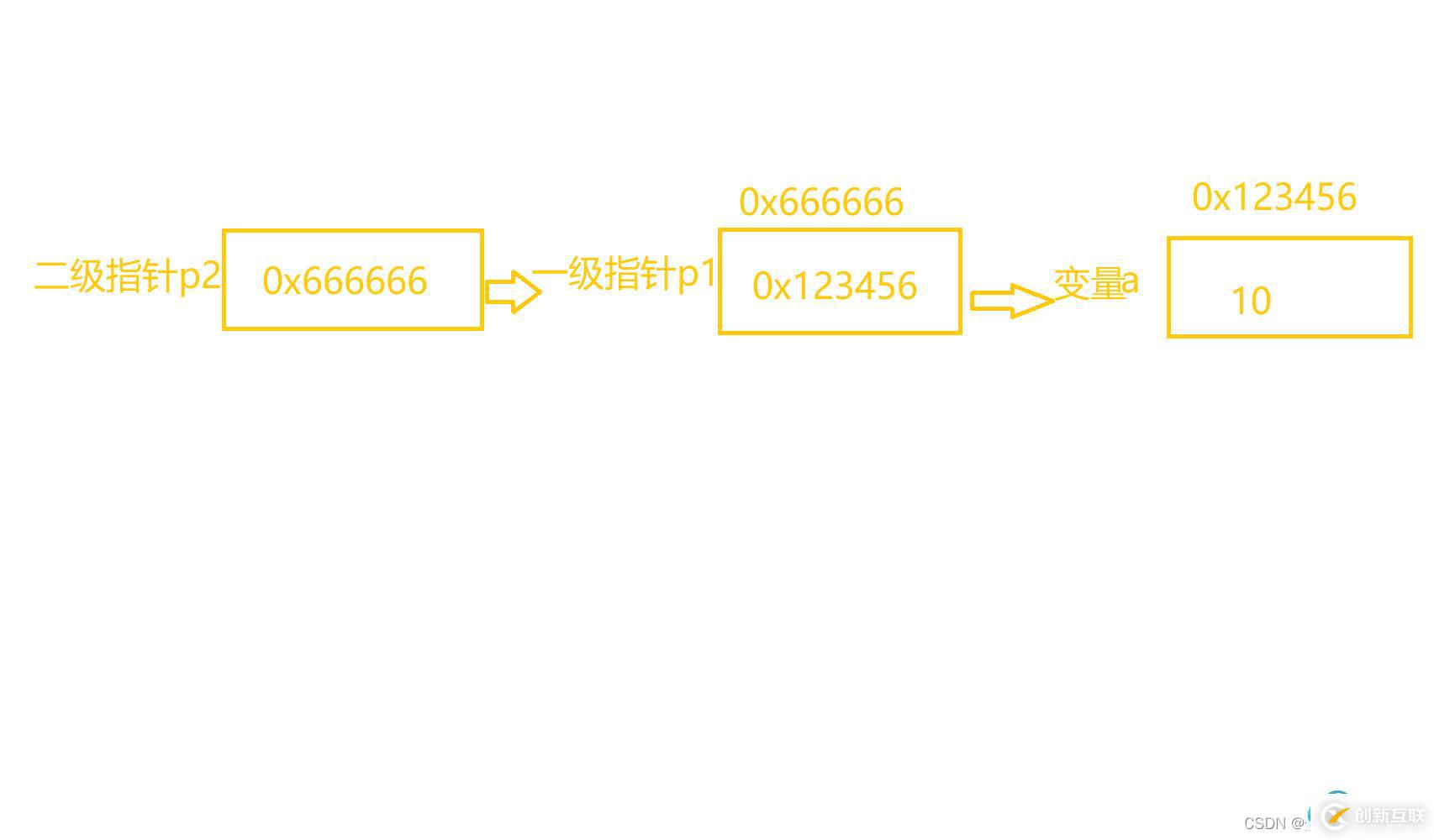 可以看到輸出結(jié)果第一行為一級指針解引用后的值,即變量a的值;第二行為二級指針一次解引用的值,即為一級指針的值,一級指針的值即為變量a的地址;第三行為二級指針二次解引用的值,即為變量a的值?