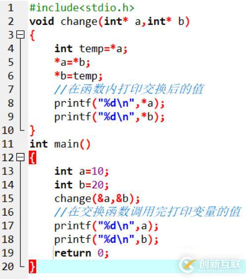 (2)地址傳遞??函數(shù)的形參為指針變量時即為值傳遞,此時傳入實參必須傳入實參的地址,即需要取地址符&,傳入實參的地址后,在函數(shù)對形參修改將會使實參也發(fā)生相應(yīng)的修改,我們以交換兩個變量的值為例