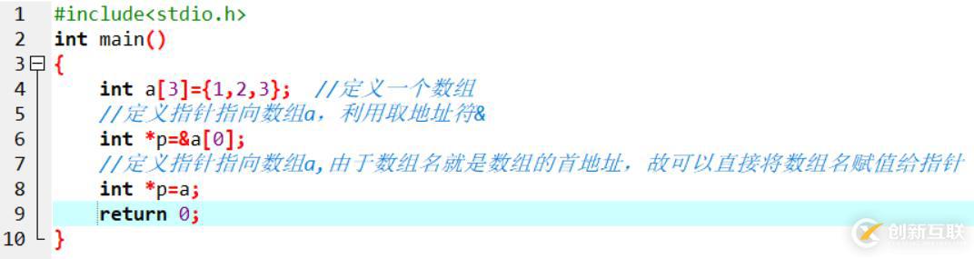 當指針指向數(shù)組的時候,由于數(shù)組變量名即為數(shù)組的首地址,故可以不用取地址符&