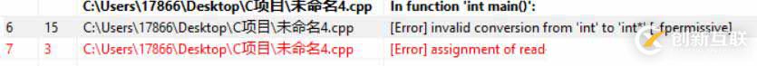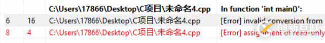 對指針常量指向其他的變量,編譯器報錯并顯示指針變量為已讀,不可修改